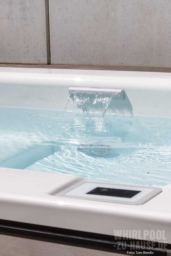 Anregungen dazu holten sich die Hausbesitzer in der fast 2000 m2 großen Ausstellung von Löchte. Wichtig bei der Auswahl des Whirlpools war die Möglichkeit einer platzsparenden, unauffälligen Integration in die Terrasse – ein Kriterium, welches das Modell „Just Silence Compact“ aus der Design-Linie von Villeroy & Boch ideal erfüllt. Dank der reduzierten Formgebung und des geradlinigen, prämierten Designs entstand ein neuartiges Sitz- und Liegekonzept, das trotz der geringen Abmessungen von 208 x 169 x 78 cm jede Menge Platz für Komfort bietet: Bis zu drei Personen können sich gegenübersitzen, ohne dabei auf eine angenehme Beinfreiheit verzichten zu müssen. Die austauschbaren Rückenteile mit der patentierten JetPak™ II-Technologie ermöglichen individuelle Massagen und Entspannung nach Maß.