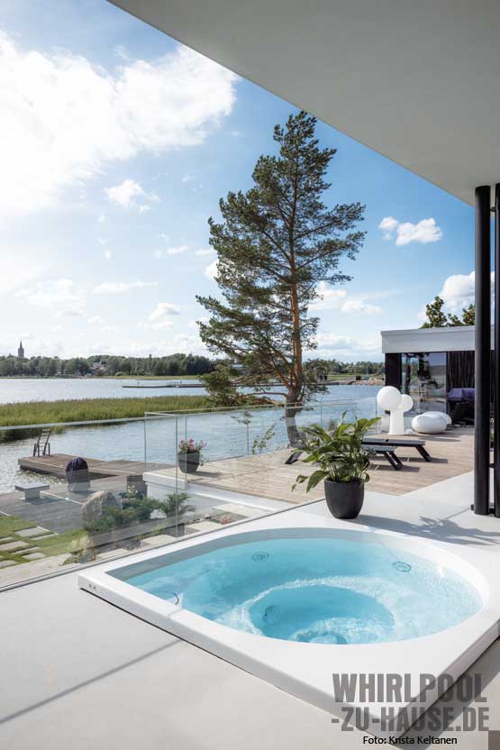 In der finnischen Küstenstadt Loviisa, umgeben von unberührter Natur, steht die „Villa Havet”, ein modernes Steinhaus, das die perfekte Verbindung von minimalistischem Design und Alltagsluxus verkörpert. Ein besonderes Highlight dieser Gestaltung ist der moderne Whirlpool auf der weitläufigen Terrasse.