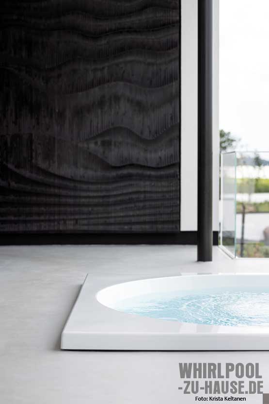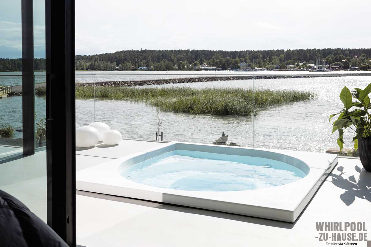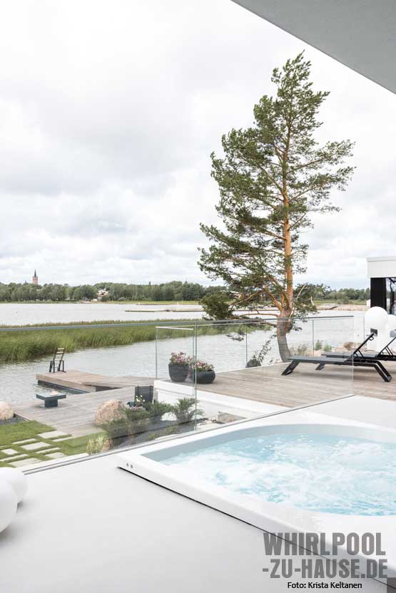 Wir wollten ein Zuhause, das nicht nur schön, sondern auch praktisch ist“, erzählt Tomi Lehtonen, der gemeinsam mit seiner Familie und drei Hunden in der „Villa Havet” lebt. „Der Standort am Meer und die ruhige Umgebung waren entscheidend für den Bau unseres Hauses. Besonders wichtig war uns, dass der Whirlpool sich harmonisch in das Gesamtbild einfügt.“